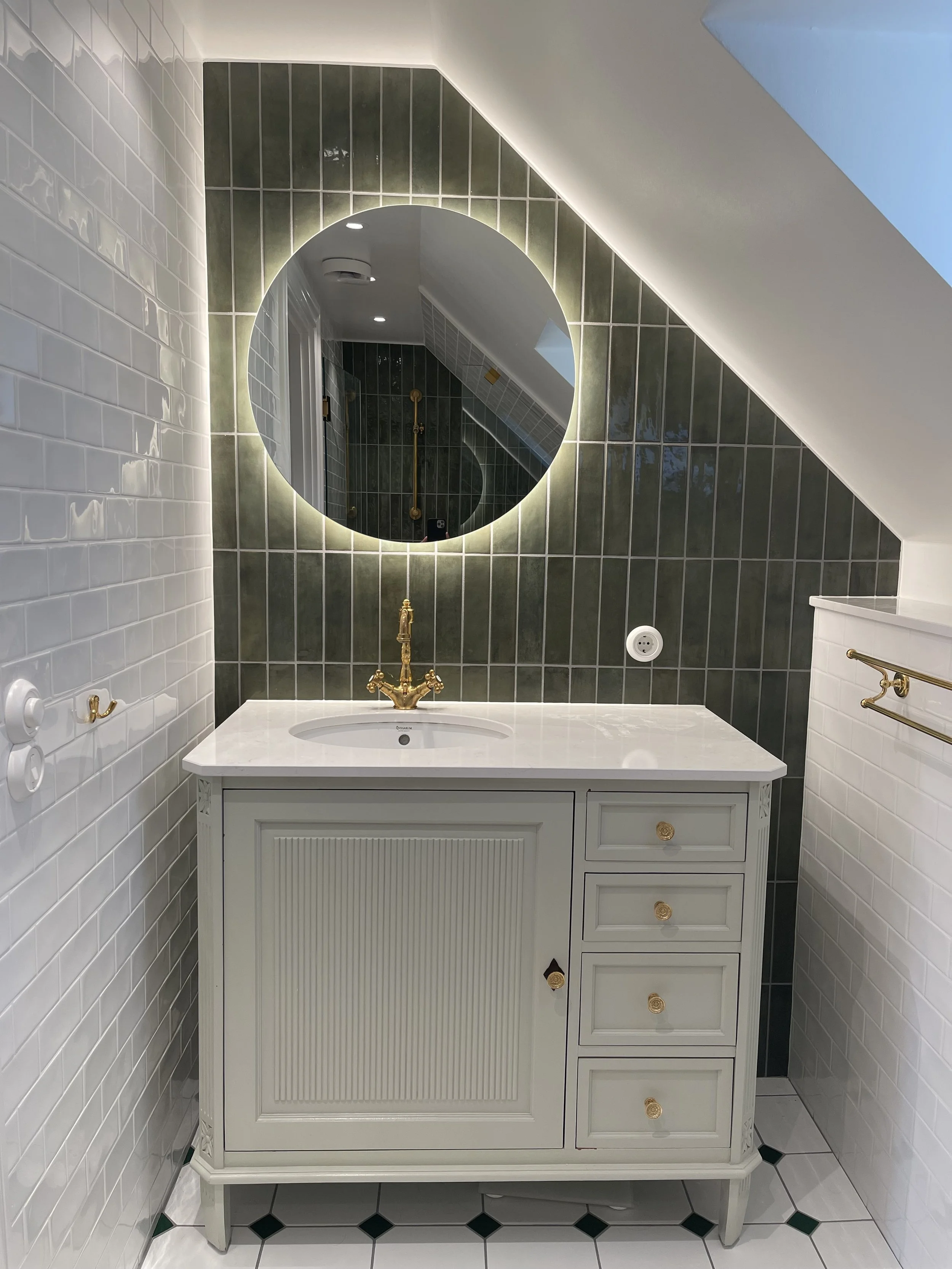 ”We are very satisfied and happy about how our new bathroom turned out. Thanks to Entrepreneur Mäster Johan. It is even better than we imagined. We really appreciated the problem solving skills, always trying to find solutions that were in line with our wishes but at the same time, practical and useful. We do not know much about building matters, but we felt we could trust Mäster Johan to find the best solution for our specific wishes, and home. In short, we explained our vision, and it was translated into a practicable solution that turned out better than we dared to hope. The communication was fast and helpful, responsive, flexible and respecting our schedule always accommodating to our preferences for e.g. meeting times, calls etc. Mäster Johan has a high appreciation of quality, which we value. No half way solutions or compromises when it comes to quality. The work was characterised by high standards, and with a keen eye for details.”